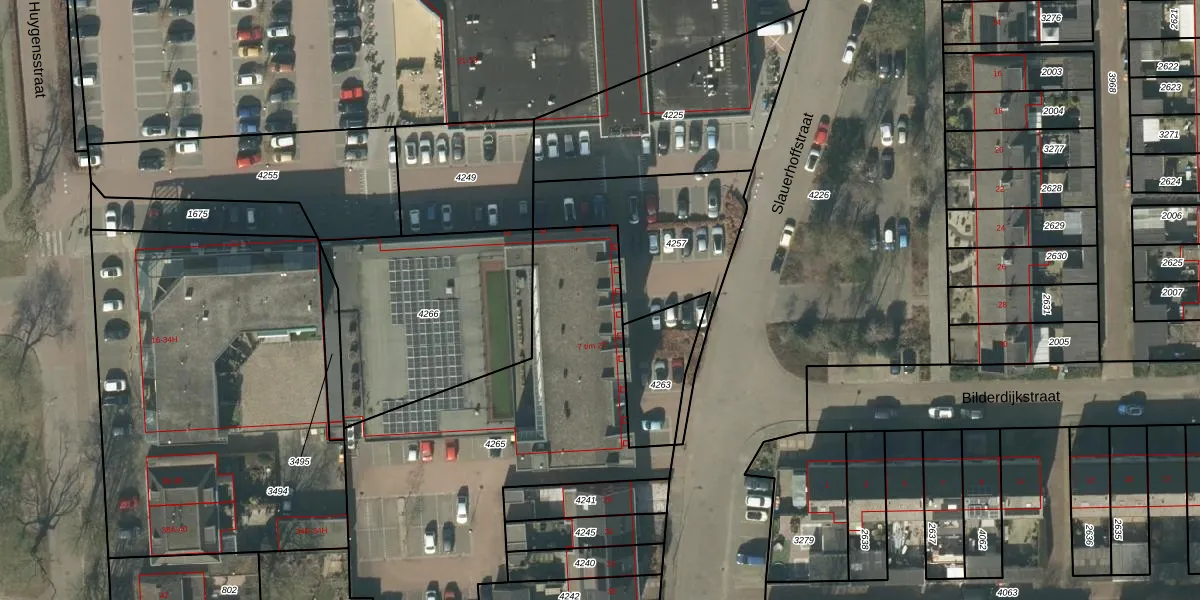 Het perceel waarop Slauerhoffstraat 25 staat heeft een oppervlakte van 1710 m². Dit is een zeer groot perceel. De perceeloppervlakte wordt geregistreerd door het Kadaster. Gedetailleerde informatie over de maten van dit perceel kunt u vinden in het rapport Kadastrale kaart met maatvoering van Slauerhoffstraat 25.