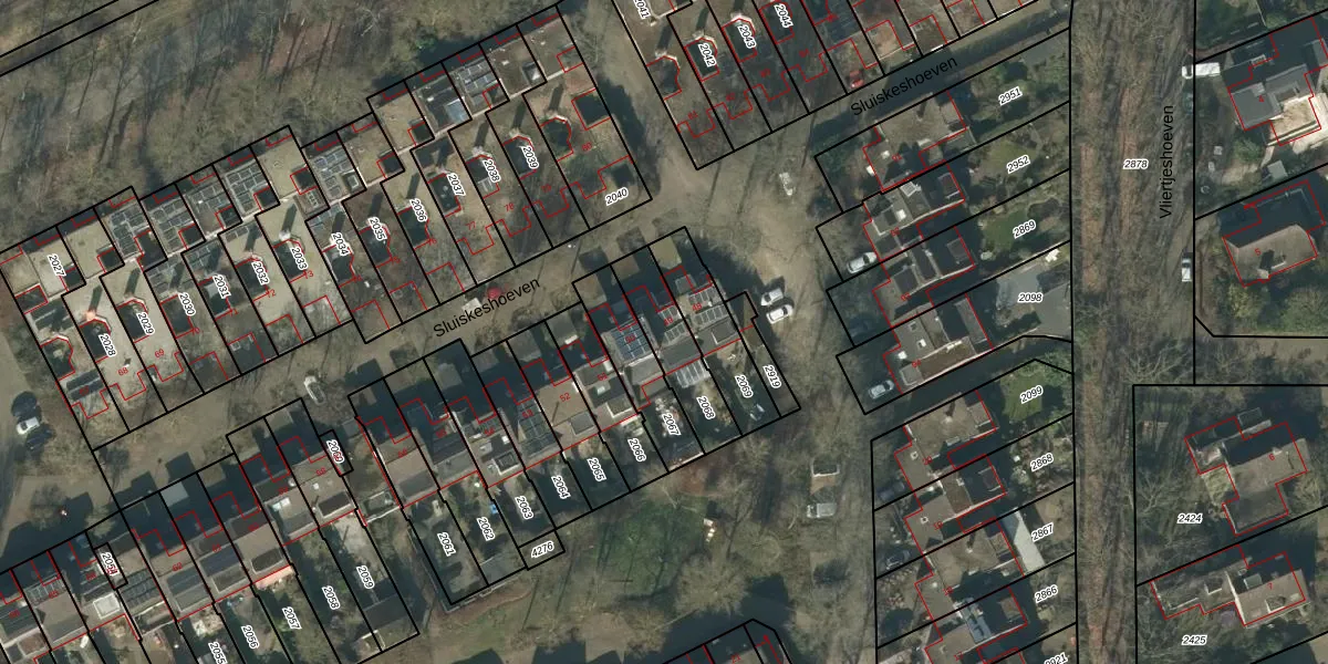 Het perceel waarop Sluiskeshoeven 49 staat heeft een oppervlakte van 202 m². Dit is een middelgroot perceel. De perceeloppervlakte wordt geregistreerd door het Kadaster. Gedetailleerde informatie over de maten van dit perceel kunt u vinden in het rapport Kadastrale kaart met maatvoering van Sluiskeshoeven 49.