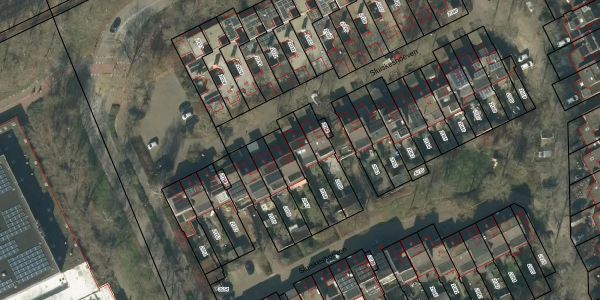 Het perceel waarop Sluiskeshoeven 59 staat heeft een oppervlakte van 251 m². Dit is een middelgroot perceel. De perceeloppervlakte wordt geregistreerd door het Kadaster. Gedetailleerde informatie over de maten van dit perceel kunt u vinden in het rapport Kadastrale kaart met maatvoering van Sluiskeshoeven 59.