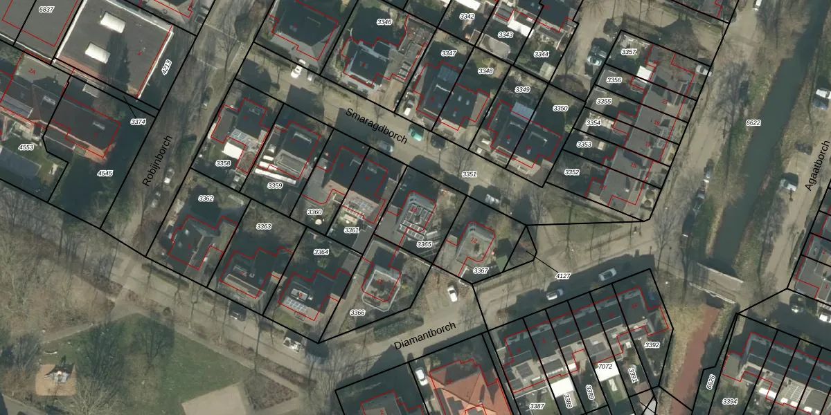 Het perceel waarop Smaragdborch 10 staat heeft een oppervlakte van 293 m². Dit is een middelgroot perceel. De perceeloppervlakte wordt geregistreerd door het Kadaster. Gedetailleerde informatie over de maten van dit perceel kunt u vinden in het rapport Kadastrale kaart met maatvoering van Smaragdborch 10.