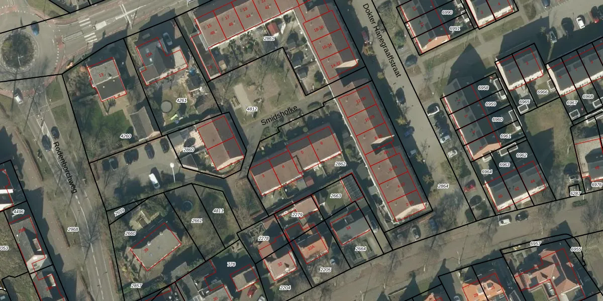 Smidshofke 5 is gelegen op kadastraal perceel RML00H2862. Deze kadastrale aanduiding is uniek en wordt gebruikt door het Kadaster om eigendomsrechten en andere zakelijke rechten vast te leggen. Het perceel maakt onderdeel uit van de kadastrale gemeente Rosmalen.