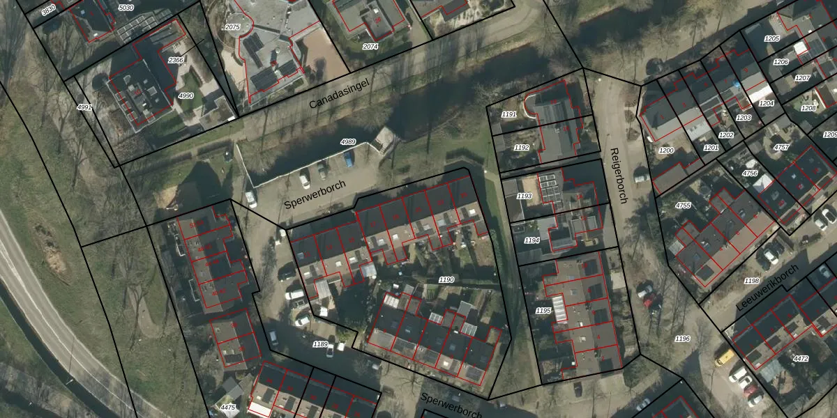 Het perceel waarop Sperwerborch 21 staat heeft een oppervlakte van 1890 m². Dit is een zeer groot perceel. De perceeloppervlakte wordt geregistreerd door het Kadaster. Gedetailleerde informatie over de maten van dit perceel kunt u vinden in het rapport Kadastrale kaart met maatvoering van Sperwerborch 21.
