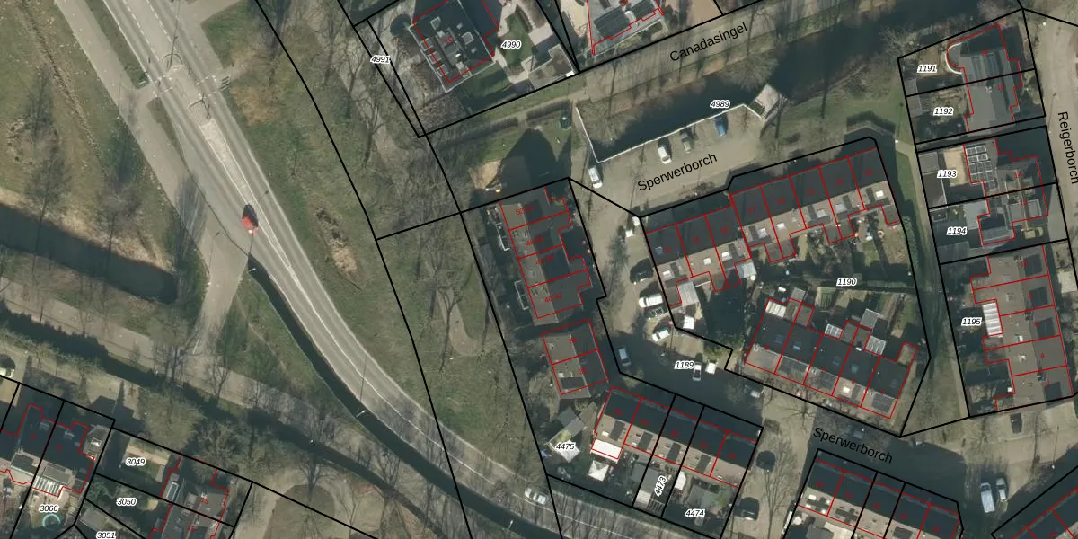 Het perceel waarop Sperwerborch 46 staat heeft een oppervlakte van 1197 m². Dit is een zeer groot perceel. De perceeloppervlakte wordt geregistreerd door het Kadaster. Gedetailleerde informatie over de maten van dit perceel kunt u vinden in het rapport Kadastrale kaart met maatvoering van Sperwerborch 46.