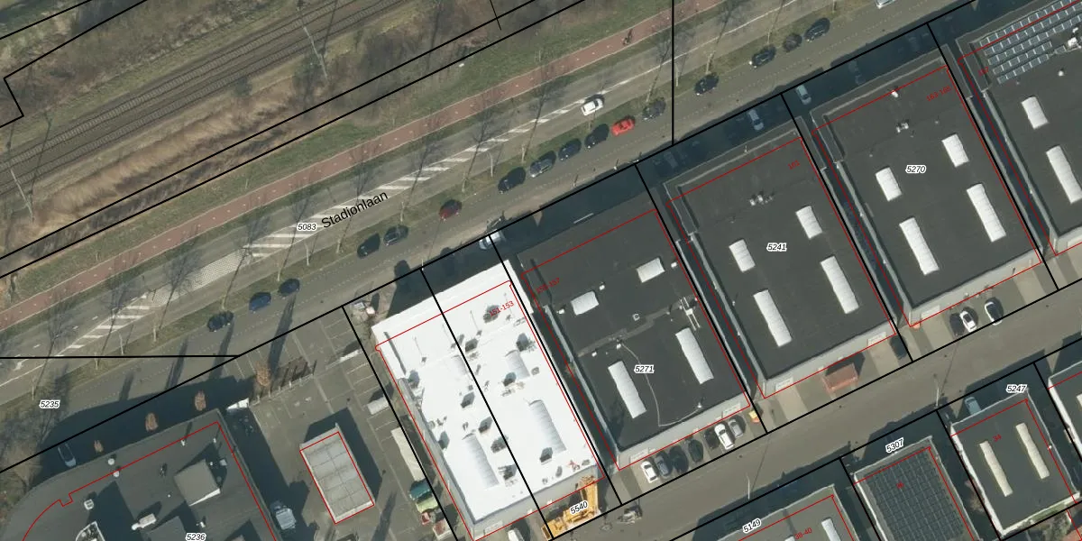 Stadionlaan 155 is gelegen op kadastraal perceel RML00E5271. Deze kadastrale aanduiding is uniek en wordt gebruikt door het Kadaster om eigendomsrechten en andere zakelijke rechten vast te leggen. Het perceel maakt onderdeel uit van de kadastrale gemeente Rosmalen.
