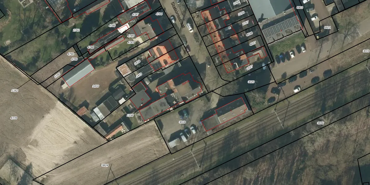 Het perceel waarop Stationsstraat 23 staat heeft een oppervlakte van 1190 m². Dit is een zeer groot perceel. De perceeloppervlakte wordt geregistreerd door het Kadaster. Gedetailleerde informatie over de maten van dit perceel kunt u vinden in het rapport Kadastrale kaart met maatvoering van Stationsstraat 23.