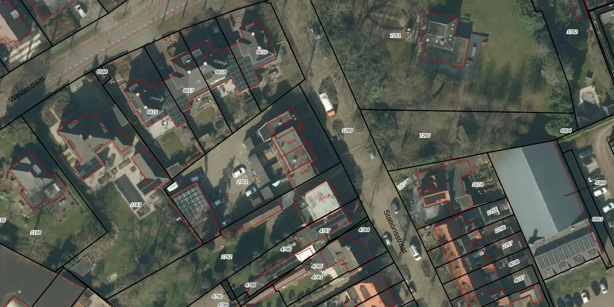 Het perceel waarop Stationsstraat 7 staat heeft een oppervlakte van 1362 m². Dit is een zeer groot perceel. De perceeloppervlakte wordt geregistreerd door het Kadaster. Gedetailleerde informatie over de maten van dit perceel kunt u vinden in het rapport Kadastrale kaart met maatvoering van Stationsstraat 7.