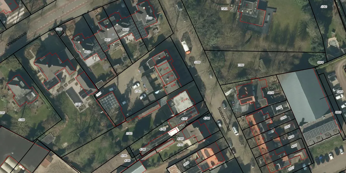 Het perceel waarop Stationsstraat 9-A staat heeft een oppervlakte van 1362 m². Dit is een zeer groot perceel. De perceeloppervlakte wordt geregistreerd door het Kadaster. Gedetailleerde informatie over de maten van dit perceel kunt u vinden in het rapport Kadastrale kaart met maatvoering van Stationsstraat 9-A.
