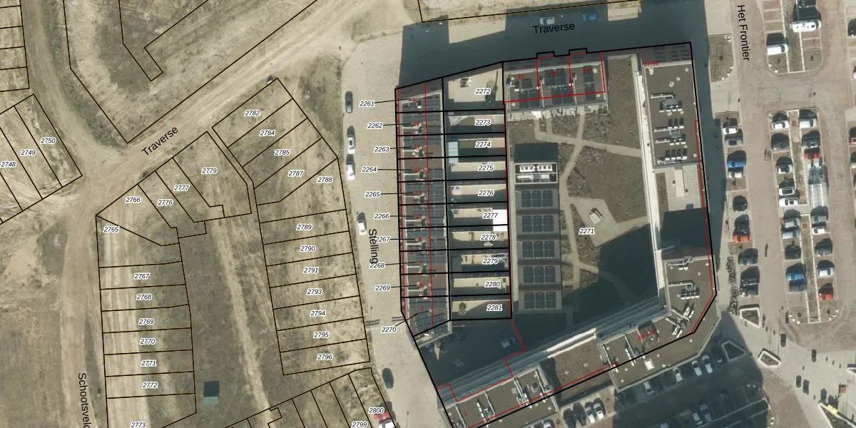 Gebruik de zoekbalk of klik op een perceel voor informatie over de adressen binnen dit perceel.