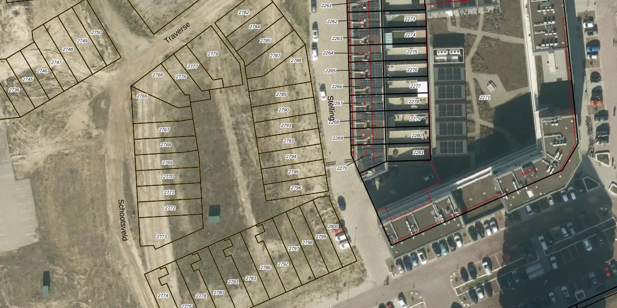 Gebruik de zoekbalk of klik op een perceel voor informatie over de adressen binnen dit perceel.