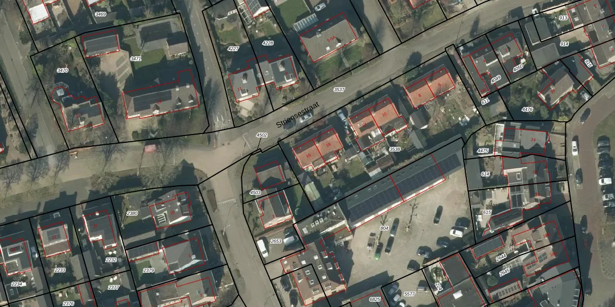 Het perceel waarop Striensestraat 16 staat heeft een oppervlakte van 1674 m². Dit is een zeer groot perceel. De perceeloppervlakte wordt geregistreerd door het Kadaster. Gedetailleerde informatie over de maten van dit perceel kunt u vinden in het rapport Kadastrale kaart met maatvoering van Striensestraat 16.