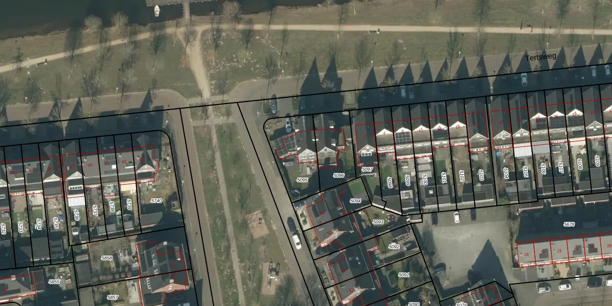 Het perceel waarop Tertsweg 1 staat heeft een oppervlakte van 366 m². Dit is een groot perceel. De perceeloppervlakte wordt geregistreerd door het Kadaster. Gedetailleerde informatie over de maten van dit perceel kunt u vinden in het rapport Kadastrale kaart met maatvoering van Tertsweg 1.