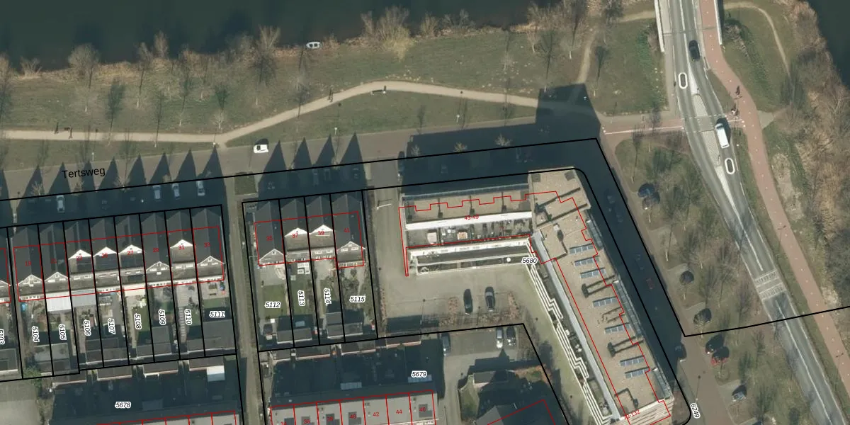 Tertsweg 43 is gelegen op kadastraal perceel RML00H5680. Deze kadastrale aanduiding is uniek en wordt gebruikt door het Kadaster om eigendomsrechten en andere zakelijke rechten vast te leggen. Het perceel maakt onderdeel uit van de kadastrale gemeente Rosmalen.
