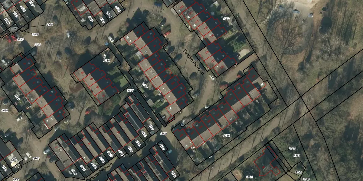 Het perceel waarop Tielekeshoeven 104 staat heeft een oppervlakte van 1210 m². Dit is een zeer groot perceel. De perceeloppervlakte wordt geregistreerd door het Kadaster. Gedetailleerde informatie over de maten van dit perceel kunt u vinden in het rapport Kadastrale kaart met maatvoering van Tielekeshoeven 104.