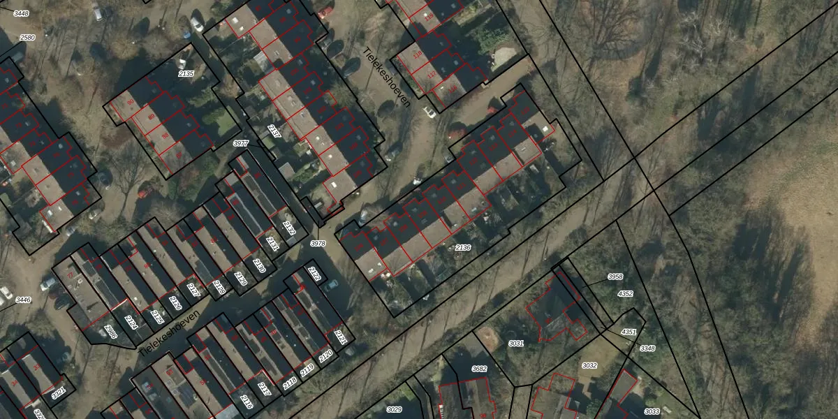 Het perceel waarop Tielekeshoeven 109 staat heeft een oppervlakte van 1333 m². Dit is een zeer groot perceel. De perceeloppervlakte wordt geregistreerd door het Kadaster. Gedetailleerde informatie over de maten van dit perceel kunt u vinden in het rapport Kadastrale kaart met maatvoering van Tielekeshoeven 109.
