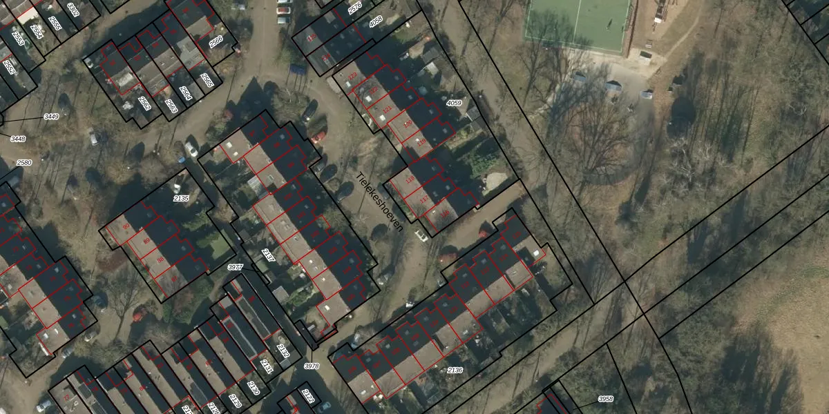 Het perceel waarop Tielekeshoeven 117 staat heeft een oppervlakte van 1204 m². Dit is een zeer groot perceel. De perceeloppervlakte wordt geregistreerd door het Kadaster. Gedetailleerde informatie over de maten van dit perceel kunt u vinden in het rapport Kadastrale kaart met maatvoering van Tielekeshoeven 117.