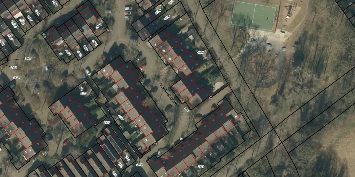 Het perceel waarop Tielekeshoeven 118 staat heeft een oppervlakte van 1204 m². Dit is een zeer groot perceel. De perceeloppervlakte wordt geregistreerd door het Kadaster. Gedetailleerde informatie over de maten van dit perceel kunt u vinden in het rapport Kadastrale kaart met maatvoering van Tielekeshoeven 118.