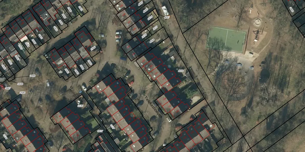 Tielekeshoeven 121 is gelegen op kadastraal perceel RML00G4059. Deze kadastrale aanduiding is uniek en wordt gebruikt door het Kadaster om eigendomsrechten en andere zakelijke rechten vast te leggen. Het perceel maakt onderdeel uit van de kadastrale gemeente Rosmalen.