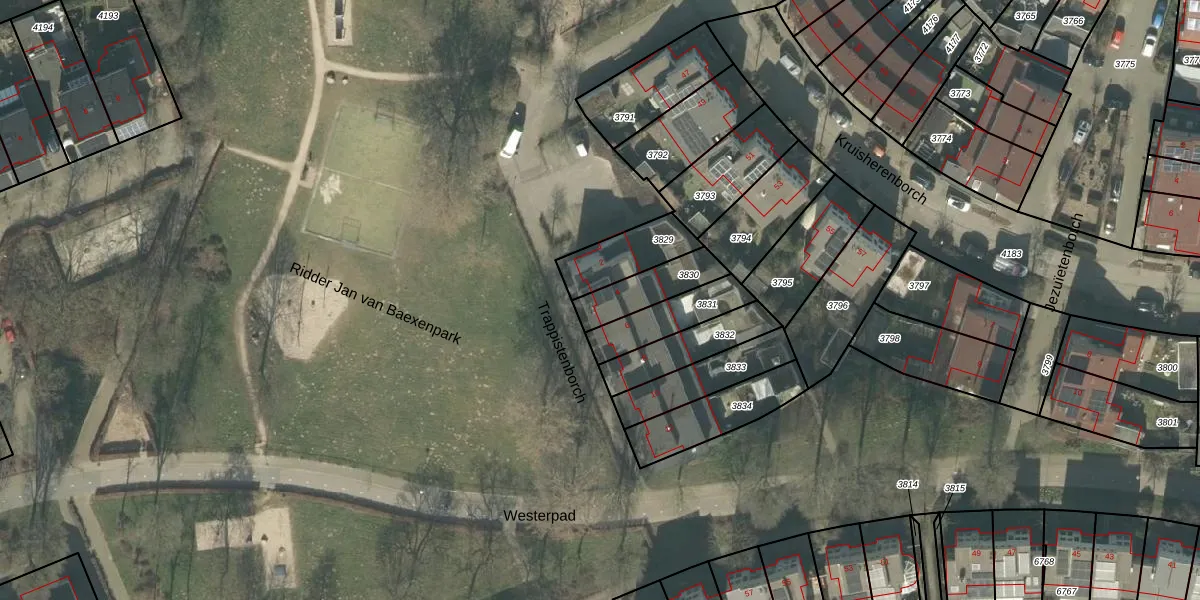 Gebruik de zoekbalk of klik op een perceel voor informatie over de adressen binnen dit perceel.