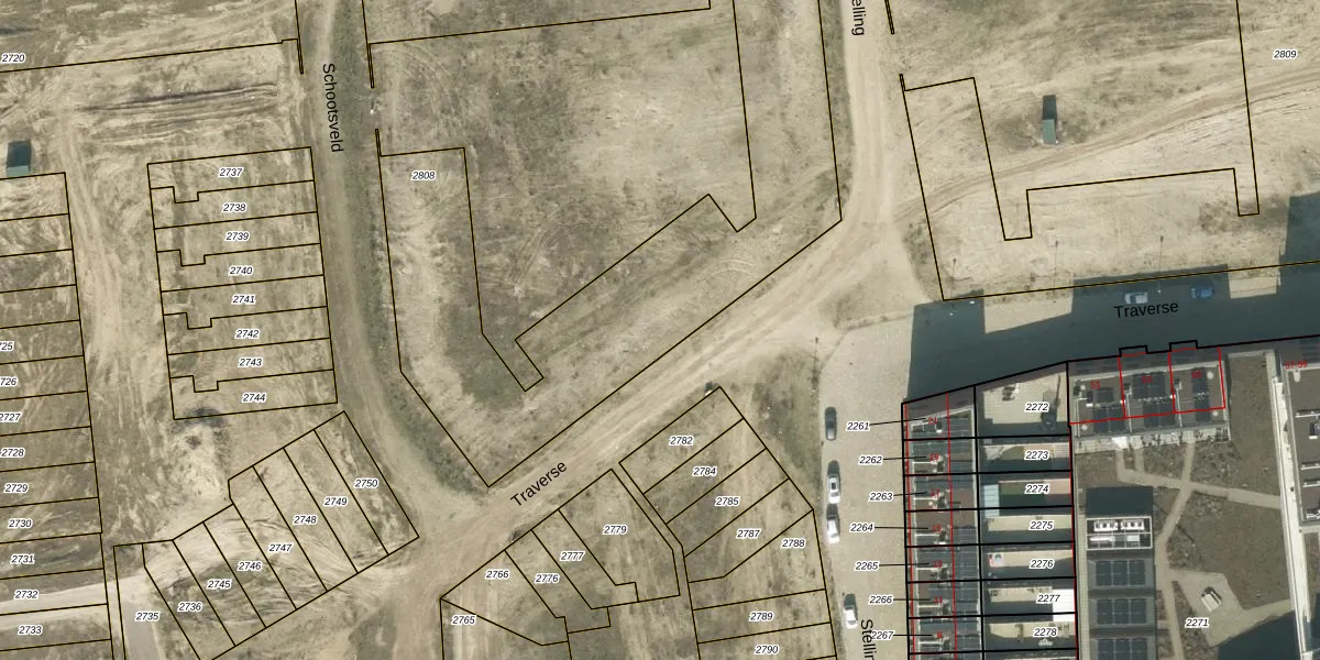 Het perceel waarop Traverse 119 staat heeft een oppervlakte van 2972 m². Dit is een zeer groot perceel. De perceeloppervlakte wordt geregistreerd door het Kadaster. Gedetailleerde informatie over de maten van dit perceel kunt u vinden in het rapport Kadastrale kaart met maatvoering van Traverse 119.