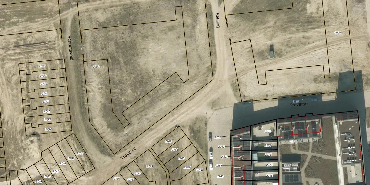 Het perceel waarop Traverse 125 staat heeft een oppervlakte van 2972 m². Dit is een zeer groot perceel. De perceeloppervlakte wordt geregistreerd door het Kadaster. Gedetailleerde informatie over de maten van dit perceel kunt u vinden in het rapport Kadastrale kaart met maatvoering van Traverse 125.