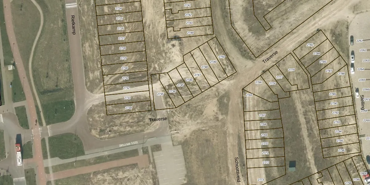 Het perceel waarop Traverse 7 staat heeft een oppervlakte van 101 m². Dit is een middelgroot perceel. De perceeloppervlakte wordt geregistreerd door het Kadaster. Gedetailleerde informatie over de maten van dit perceel kunt u vinden in het rapport Kadastrale kaart met maatvoering van Traverse 7.