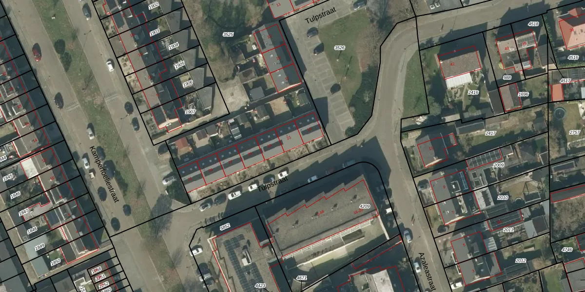 Het perceel waarop Tulpstraat 21 staat heeft een oppervlakte van 3357 m². Dit is een zeer groot perceel. De perceeloppervlakte wordt geregistreerd door het Kadaster. Gedetailleerde informatie over de maten van dit perceel kunt u vinden in het rapport Kadastrale kaart met maatvoering van Tulpstraat 21.