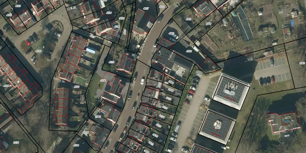 Gebruik de zoekbalk of klik op een perceel voor informatie over de adressen binnen dit perceel.