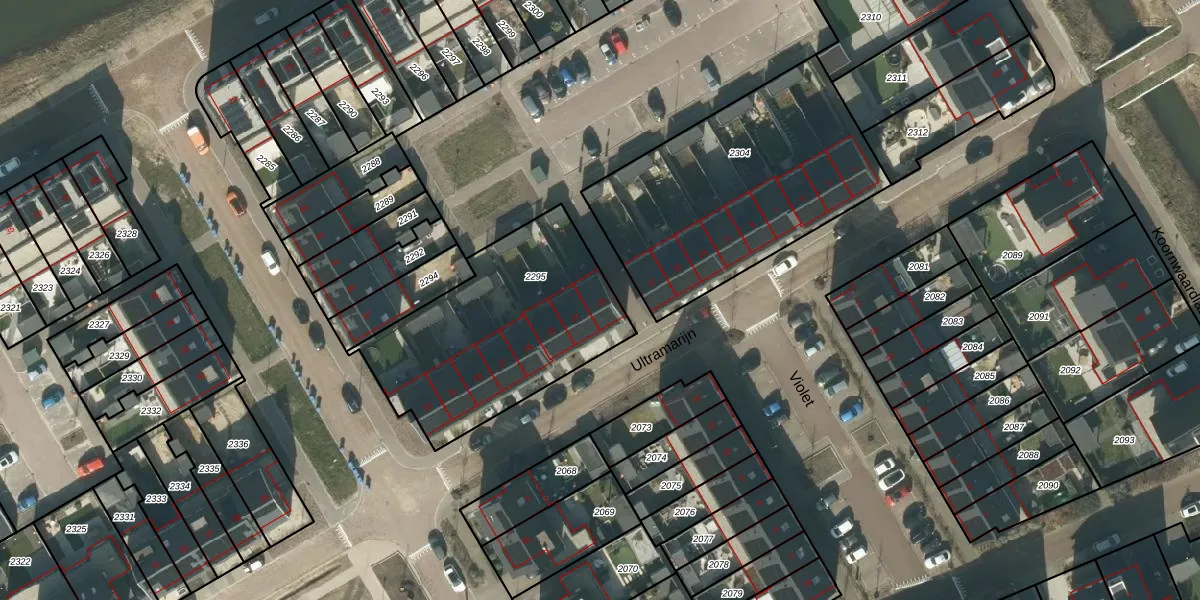 Het perceel waarop Ultramarijn 19 staat heeft een oppervlakte van 945 m². Dit is een groot perceel. De perceeloppervlakte wordt geregistreerd door het Kadaster. Gedetailleerde informatie over de maten van dit perceel kunt u vinden in het rapport Kadastrale kaart met maatvoering van Ultramarijn 19.