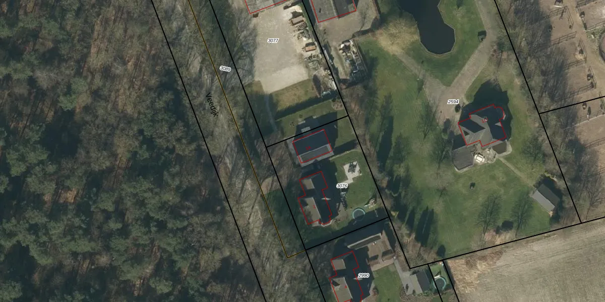 Het perceel waarop Veedijk 2-A staat heeft een oppervlakte van 1060 m². Dit is een zeer groot perceel. De perceeloppervlakte wordt geregistreerd door het Kadaster. Gedetailleerde informatie over de maten van dit perceel kunt u vinden in het rapport Kadastrale kaart met maatvoering van Veedijk 2-A.
