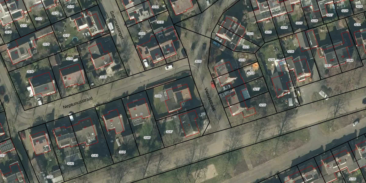 Het perceel waarop Venusstraat 4 staat heeft een oppervlakte van 477 m². Dit is een groot perceel. De perceeloppervlakte wordt geregistreerd door het Kadaster. Gedetailleerde informatie over de maten van dit perceel kunt u vinden in het rapport Kadastrale kaart met maatvoering van Venusstraat 4.