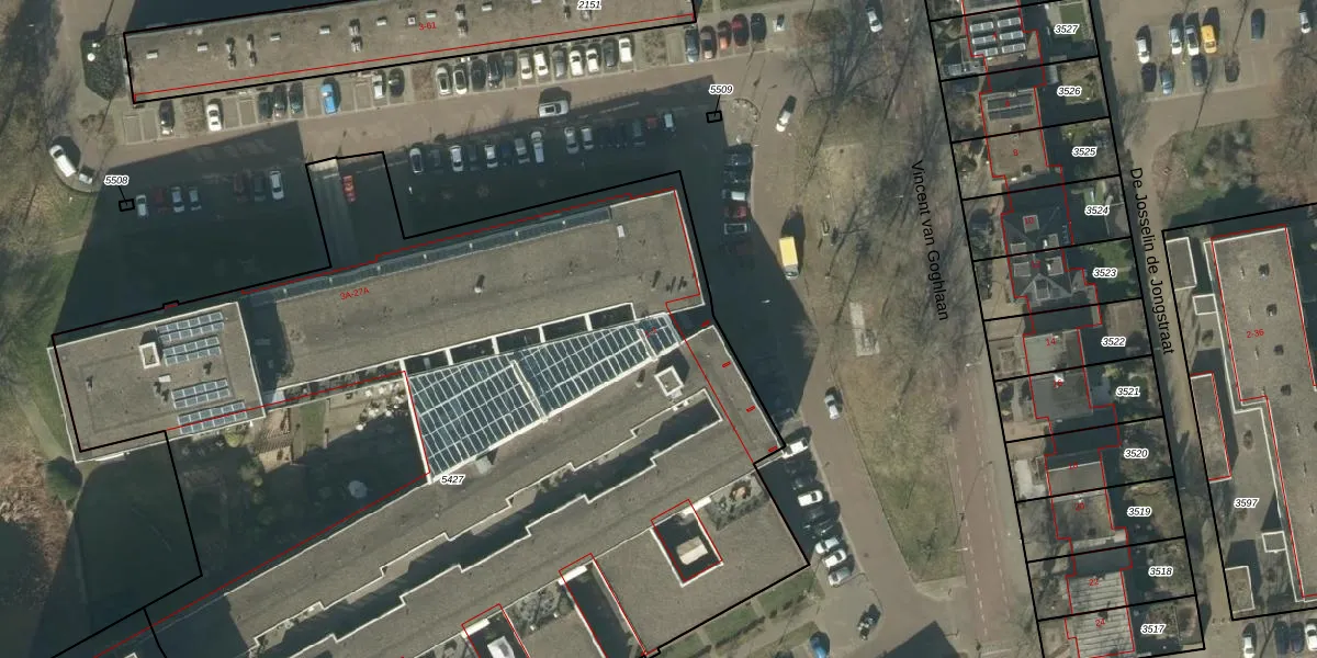 Vincent van Goghlaan 1 is gelegen op kadastraal perceel RML00E5427. Deze kadastrale aanduiding is uniek en wordt gebruikt door het Kadaster om eigendomsrechten en andere zakelijke rechten vast te leggen. Het perceel maakt onderdeel uit van de kadastrale gemeente Rosmalen.
