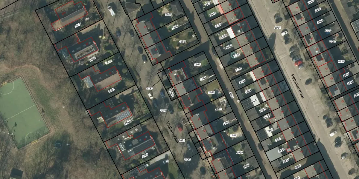Gebruik de zoekbalk of klik op een perceel voor informatie over de adressen binnen dit perceel.