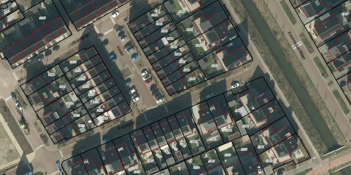 Het perceel waarop Violet 1 staat heeft een oppervlakte van 164 m². Dit is een middelgroot perceel. De perceeloppervlakte wordt geregistreerd door het Kadaster. Gedetailleerde informatie over de maten van dit perceel kunt u vinden in het rapport Kadastrale kaart met maatvoering van Violet 1.