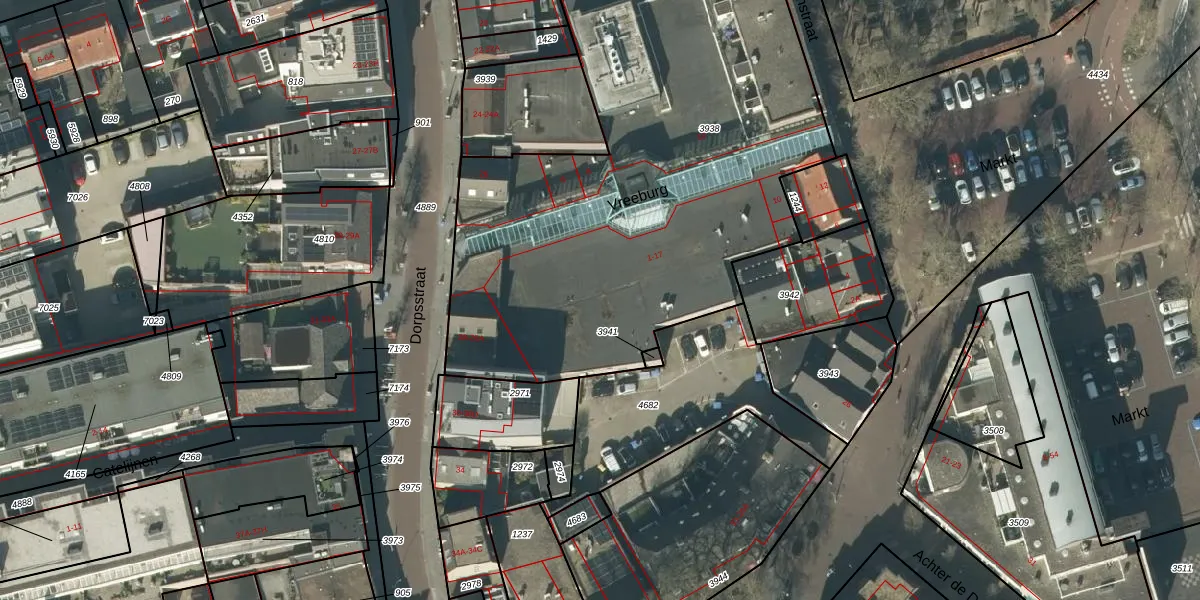 Het perceel waarop Vreeburg 5 staat heeft een oppervlakte van 3681 m². Dit is een zeer groot perceel. De perceeloppervlakte wordt geregistreerd door het Kadaster. Gedetailleerde informatie over de maten van dit perceel kunt u vinden in het rapport Kadastrale kaart met maatvoering van Vreeburg 5.