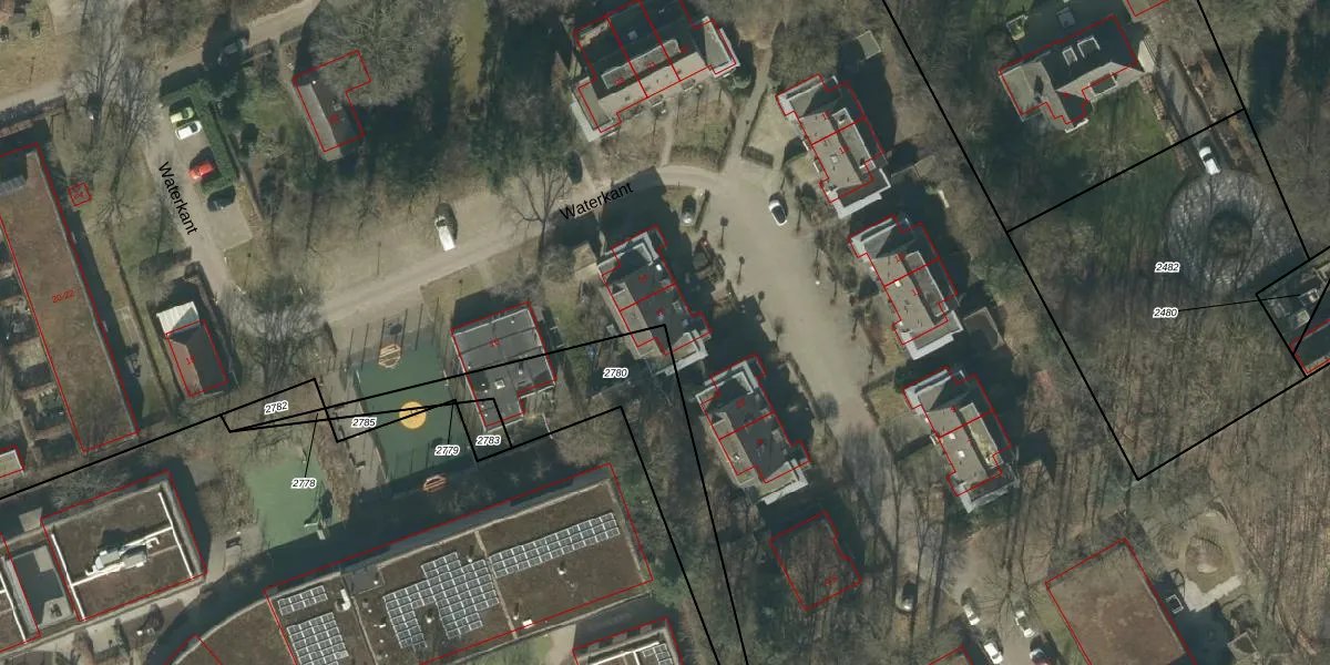 Het perceel waarop Waterkant 12 staat heeft een oppervlakte van 702 m². Dit is een groot perceel. De perceeloppervlakte wordt geregistreerd door het Kadaster. Gedetailleerde informatie over de maten van dit perceel kunt u vinden in het rapport Kadastrale kaart met maatvoering van Waterkant 12.