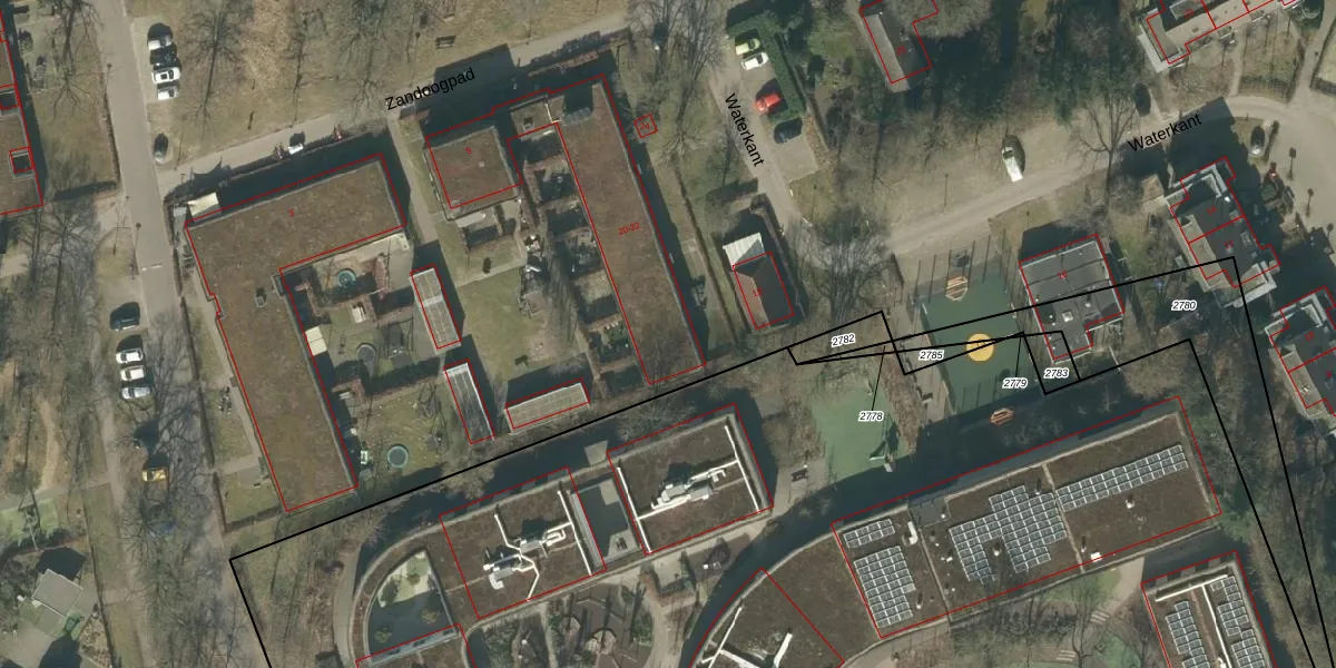 Het perceel waarop Waterkant 20 staat heeft een oppervlakte van 27,3 ha. Dit is een zeer groot perceel. De perceeloppervlakte wordt geregistreerd door het Kadaster. Gedetailleerde informatie over de maten van dit perceel kunt u vinden in het rapport Kadastrale kaart met maatvoering van Waterkant 20.