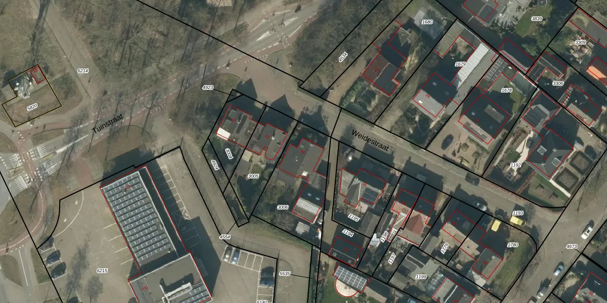 Het perceel waarop Weidestraat 60 staat heeft een oppervlakte van 668 m². Dit is een groot perceel. De perceeloppervlakte wordt geregistreerd door het Kadaster. Gedetailleerde informatie over de maten van dit perceel kunt u vinden in het rapport Kadastrale kaart met maatvoering van Weidestraat 60.