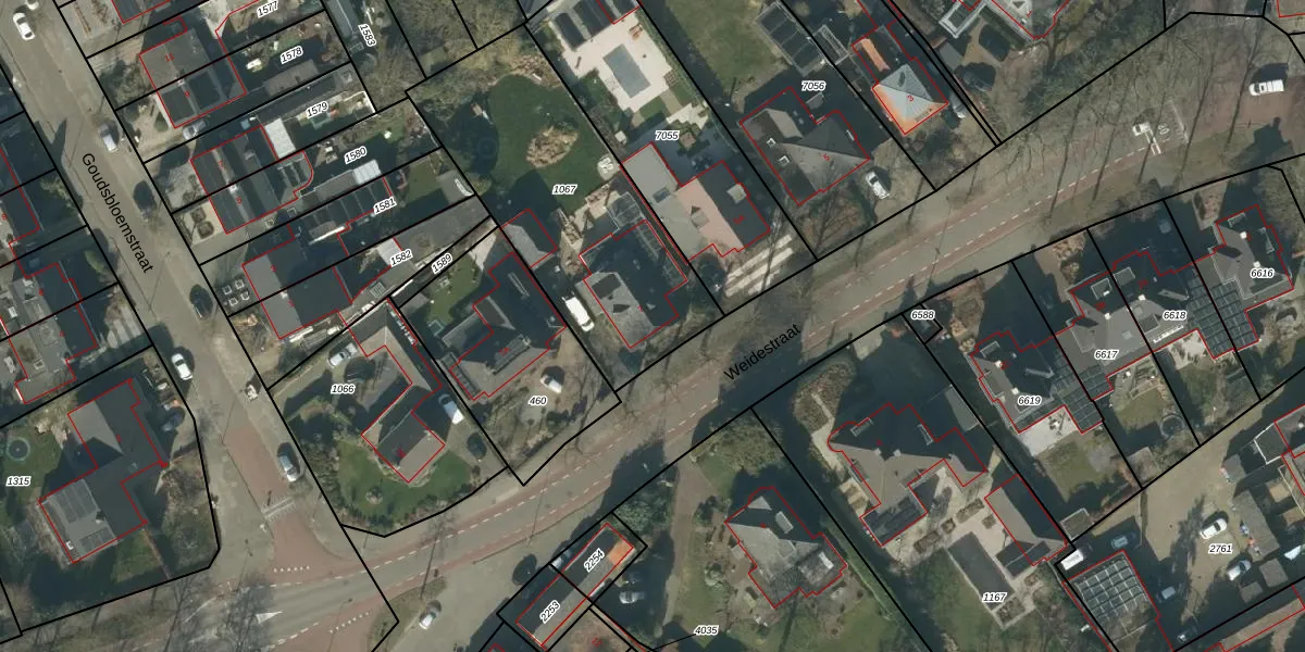 Het perceel waarop Weidestraat 7 staat heeft een oppervlakte van 1140 m². Dit is een zeer groot perceel. De perceeloppervlakte wordt geregistreerd door het Kadaster. Gedetailleerde informatie over de maten van dit perceel kunt u vinden in het rapport Kadastrale kaart met maatvoering van Weidestraat 7.
