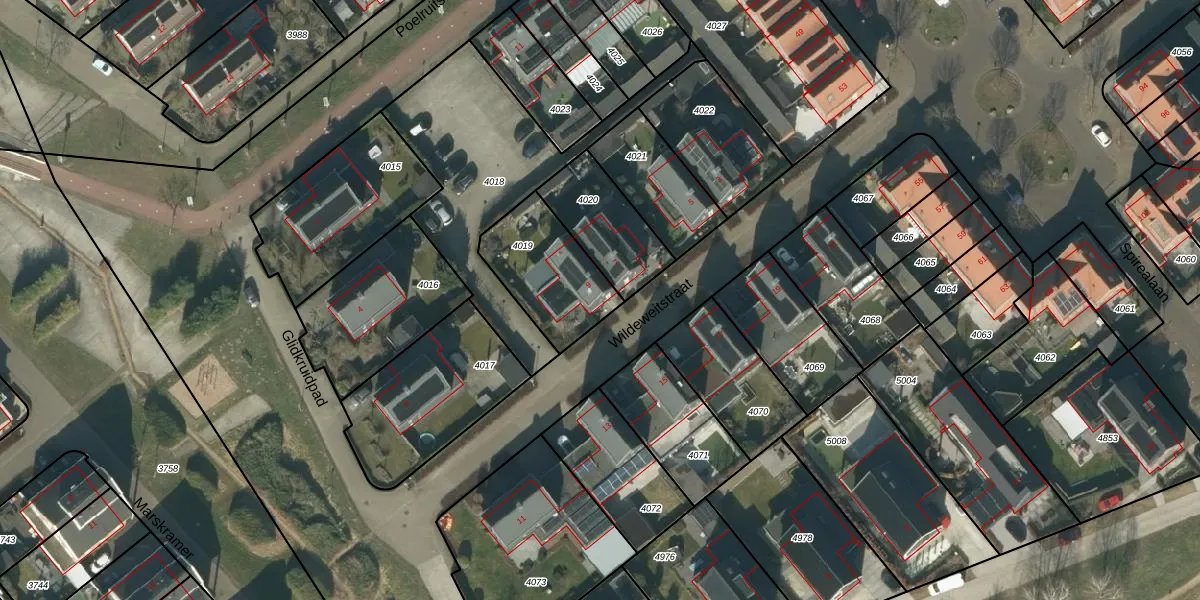Het perceel waarop Wildeweitstraat 9 staat heeft een oppervlakte van 329 m². Dit is een groot perceel. De perceeloppervlakte wordt geregistreerd door het Kadaster. Gedetailleerde informatie over de maten van dit perceel kunt u vinden in het rapport Kadastrale kaart met maatvoering van Wildeweitstraat 9.