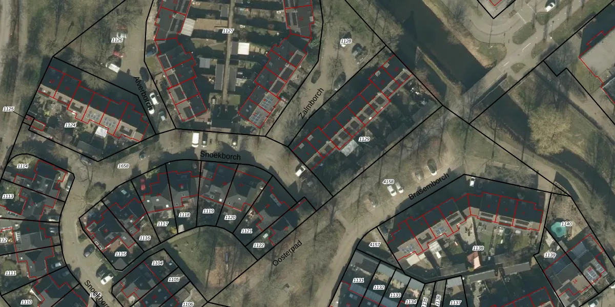 Het perceel waarop Zalmborch 1 staat heeft een oppervlakte van 1158 m². Dit is een zeer groot perceel. De perceeloppervlakte wordt geregistreerd door het Kadaster. Gedetailleerde informatie over de maten van dit perceel kunt u vinden in het rapport Kadastrale kaart met maatvoering van Zalmborch 1.