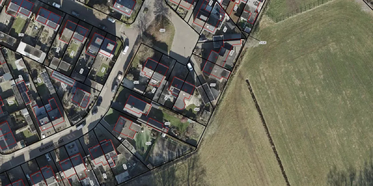Beatrixstraat 13 is gelegen op kadastraal perceel WSL02R564. Deze kadastrale aanduiding is uniek en wordt gebruikt door het Kadaster om eigendomsrechten en andere zakelijke rechten vast te leggen. Het perceel maakt onderdeel uit van de kadastrale gemeente Weerselo.