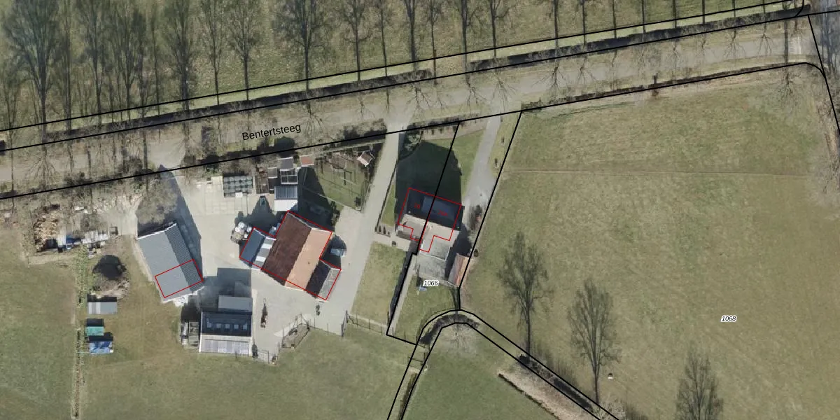 Het perceel waarop Bentertsteeg 10 staat heeft een oppervlakte van 2,4 ha. Dit is een zeer groot perceel. De perceeloppervlakte wordt geregistreerd door het Kadaster. Gedetailleerde informatie over de maten van dit perceel kunt u vinden in het rapport Kadastrale kaart met maatvoering van Bentertsteeg 10.