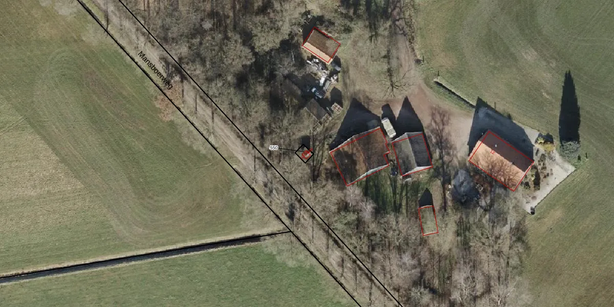 Het adres is gelegen op perceel 550 in de sectie R en de kadastrale gemeente Weerselo. De kadastrale aanduiding is aldus WSL02-R-550. Het perceel is 20 m² groot. Dat is kleiner dan de gemiddelde perceeloppervlakte in Weerselo, dat op 9233,25 m² ligt. Het grootste perceel in de kadastrale gemeente is 42,3 ha. Het kleinste perceel heeft een oppervlakte van 0 m². Er zijn geen andere adressen aanwezig op het perceel. In de Basisregistratie Kadaster (BRK) werden de grenzen van het perceel geregistreerd op 21-09-2001.