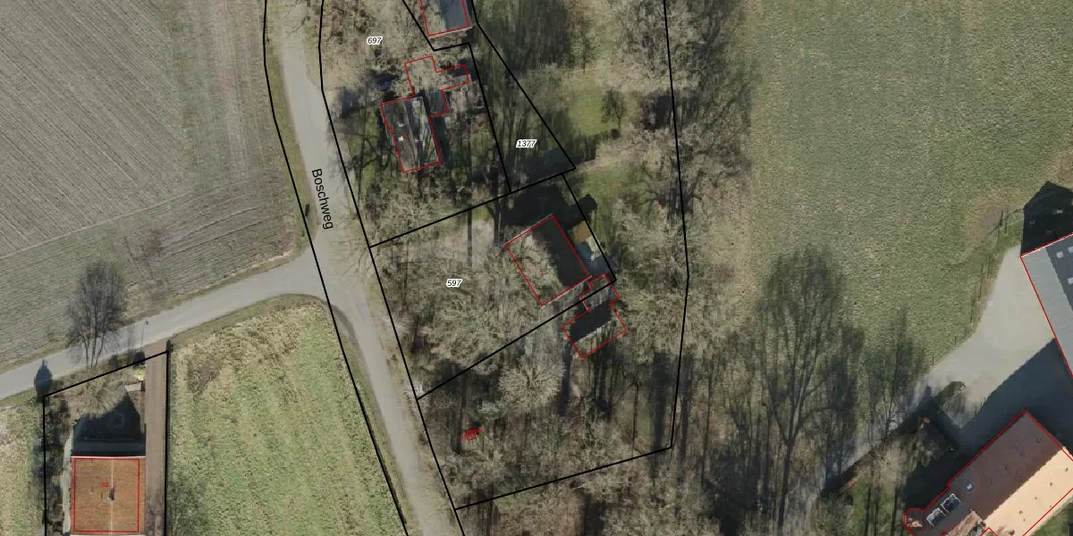 Boschweg 7 is gelegen op kadastraal perceel WSL02R597. Deze kadastrale aanduiding is uniek en wordt gebruikt door het Kadaster om eigendomsrechten en andere zakelijke rechten vast te leggen. Het perceel maakt onderdeel uit van de kadastrale gemeente Weerselo.