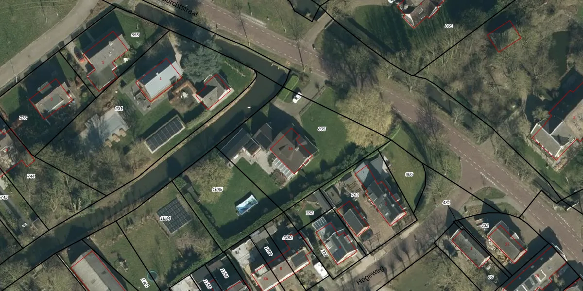 Het perceel waarop Burchtstraat 1-a staat heeft een oppervlakte van 1305 m². Dit is een zeer groot perceel. De perceeloppervlakte wordt geregistreerd door het Kadaster. Gedetailleerde informatie over de maten van dit perceel kunt u vinden in het rapport Kadastrale kaart met maatvoering van Burchtstraat 1-a.