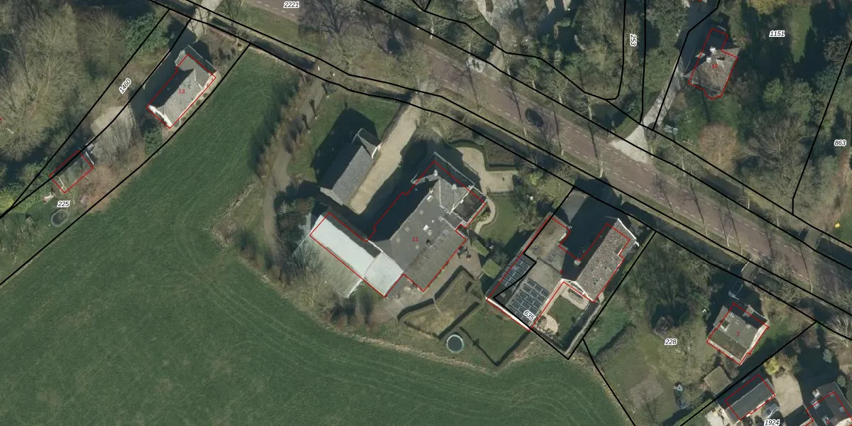 Het perceel waarop Burchtstraat 11 staat heeft een oppervlakte van 2,0 ha. Dit is een zeer groot perceel. De perceeloppervlakte wordt geregistreerd door het Kadaster. Gedetailleerde informatie over de maten van dit perceel kunt u vinden in het rapport Kadastrale kaart met maatvoering van Burchtstraat 11.