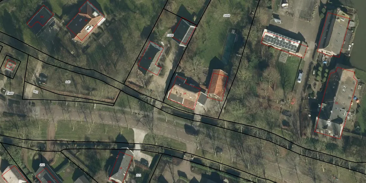 Het perceel waarop Burchtstraat 24 staat heeft een oppervlakte van 2500 m². Dit is een zeer groot perceel. De perceeloppervlakte wordt geregistreerd door het Kadaster. Gedetailleerde informatie over de maten van dit perceel kunt u vinden in het rapport Kadastrale kaart met maatvoering van Burchtstraat 24.