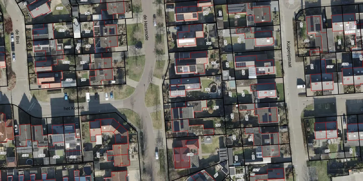 Het perceel waarop de Hersmole 13 staat heeft een oppervlakte van 426 m². Dit is een groot perceel. De perceeloppervlakte wordt geregistreerd door het Kadaster. Gedetailleerde informatie over de maten van dit perceel kunt u vinden in het rapport Kadastrale kaart met maatvoering van de Hersmole 13.
