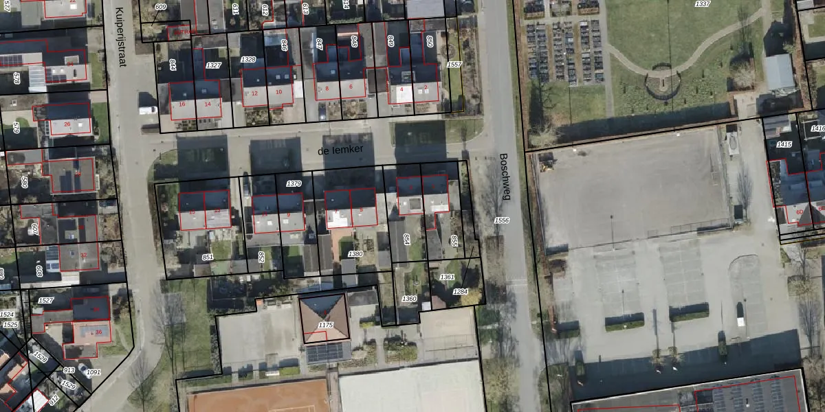 Gebruik de zoekbalk of klik op een perceel voor informatie over de adressen binnen dit perceel.