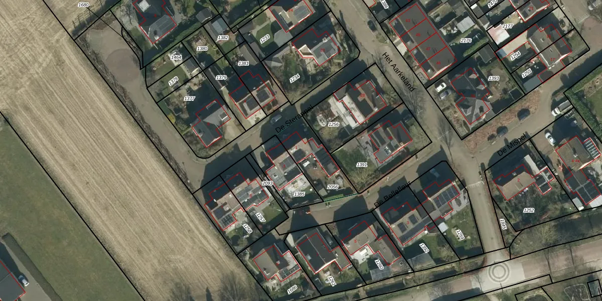 Het perceel waarop De Sterappel 1 staat heeft een oppervlakte van 325 m². Dit is een groot perceel. De perceeloppervlakte wordt geregistreerd door het Kadaster. Gedetailleerde informatie over de maten van dit perceel kunt u vinden in het rapport Kadastrale kaart met maatvoering van De Sterappel 1.